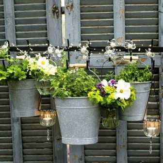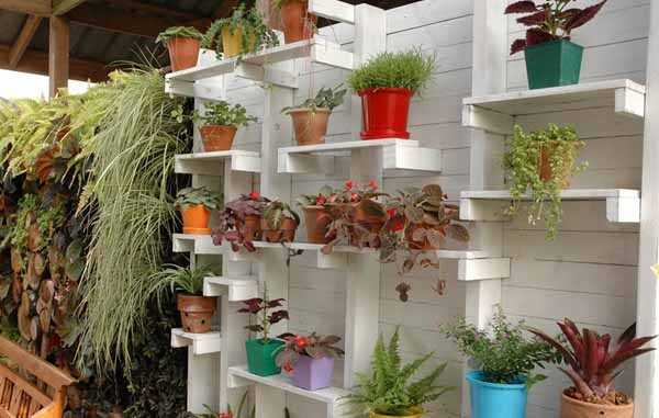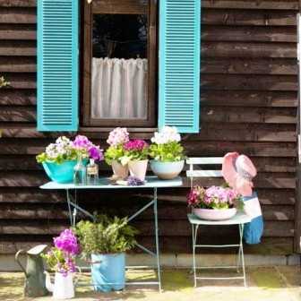 Комнатные растения могут стать хорошим дополнением к дачному дизайну. Вы можете добавить несколько ярких цветочных горшков на деревянную шпалеру забора, и этот уголок сада преобразится.