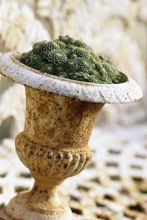 - Вазоны — украсят сад и помогут с расположением цветов. Это могут быть состаренные чаши в античном стиле или изящные вазы под мрамор.