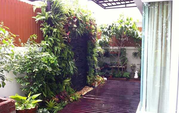 Небольшое пространство выглядит лучше, когда оно наполнено растениями. Используйте стены для выращивания подходящих растений. Даже обычный дикий виноград сделает вид глухого забора более привлекательным, а осенью порадует вас багрянцем. Если задача улучшить вид на глухой забор является для вас значимой, то сочетание зелени с водопадом сделает такую стену просто роскошной.