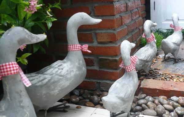 - Садовые скульптуры. Это могут быть керамические фигурки гномов, животных, а так же статуи в античном или готическом стиле, все зависит от характера самого сада. Их можно устанавливать вдоль дорожек, около водоемов, беседок.