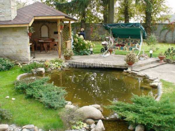- Пруд. Идеальный водоем, если ландшафт будущего участка определен как пейзажный стиль. Он может использоваться исключительно в эстетических целях, в этом случае по берегам высаживают подходящие растения, в том числе деревья, например, ивы, а так же устанавливают рядом беседку. Но пруды могут носить и практический характер, например, в водоем можно запустить рыб, особенно, если весь сад спроектирован в японском стиле. Пруд может быть источником воды для полива зеленых насаждений.