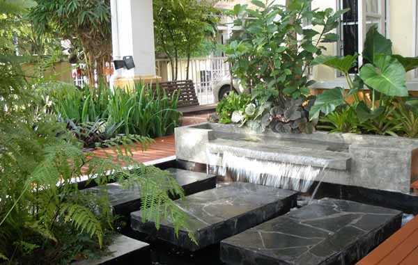- Фонтан поможет даже на небольшой площади получить источник движущейся жидкости, кроме того, это полноценный декоративный элемент, способный украсить и обозначить конкретную зону.