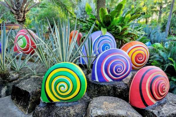 Покрасьте гальку неоновой краской и разложите ее вдоль дорожек, чтобы освещать путь в ночное время.
