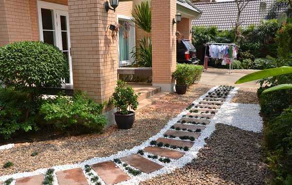 Сочная зелень растений и газонная трава освежит образ дома, добавит экологичности атмосфере, а совместное оформление раскроет творческий потенциал семьи и подарит потрясающее настроение. Мелкие камешки пригодятся для посыпания свободных участков или декора цветочных клумб.