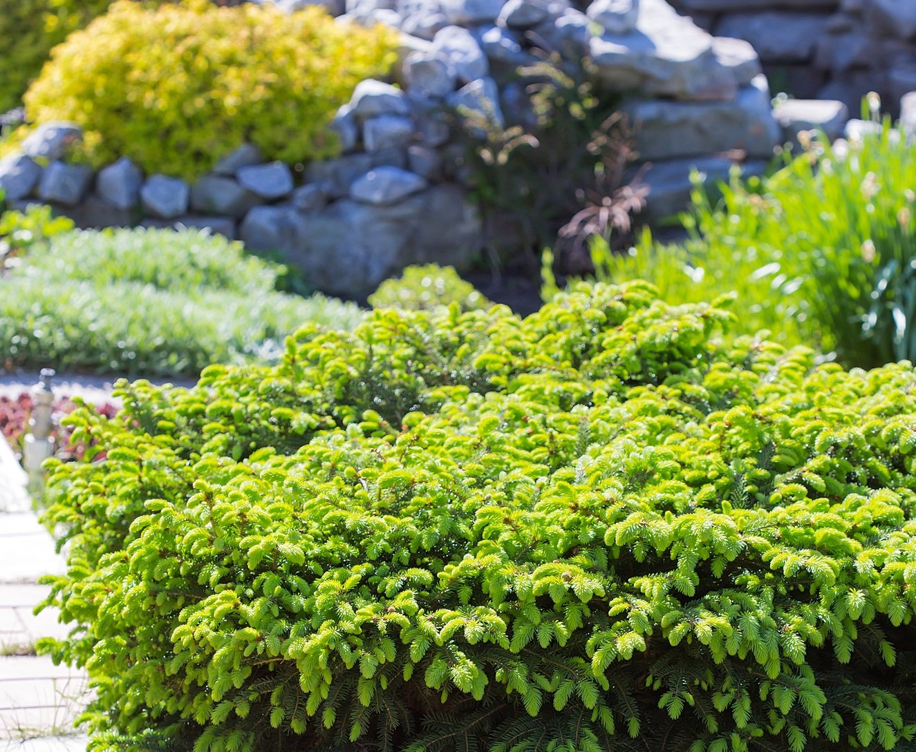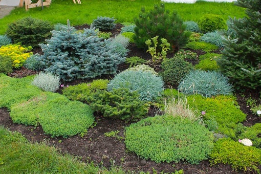 Для интереса добавьте немного незеленых вечнозеленых растений, например, карликовые голубые ели. Профессиональный планировщик учитывает размещение, скорость роста и другие факторы, чтобы обеспечить приятный вид.