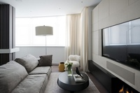 Порой кажется, что мебель как таковая отсутствует: стены, пол, потолок, функциональные объекты составляют единое целое. «В этом суть архитектурного подхода. В отличие от декораторского — когда стены обоями оклеили и вдоль них мебель готовую расставили. У нас же декора нет, а есть объемно-пространственные композиции. Я создаю оболочку, которую можно трансформировать, насыщая или, наоборот, вычищая по желанию и настроению. Чистый холст, на котором заказчик дальше сможет сам импровизировать. Только так можно получить интерьер, который будет современным не только здесь и сейчас. Но и через много лет останется таковым». В то же время архитектор убеждена, что, если не наполнить дом аксессуарами, он будет «сухим».