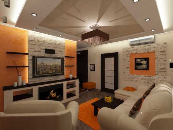 - Делать в центре комнаты разно уровневый потолок. Он наоборот будет гнетуще действовать на присутствующих. Эффект такого потолка хорош при зонировании функционально разных комнат. Не исправит ситуацию и искусственное освещение, выполненное по всем правилам, и сочетание цветов стен и потолка.