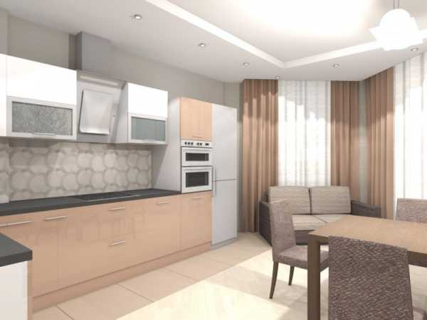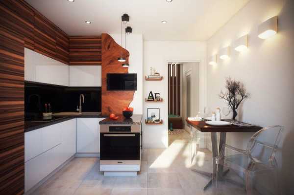 Рассматриваем кухню. Сводим в эту зону все, что необходимо для приготовления и приема пищи, не забывая при этом правила по дизайну кухонной комнаты. Очень солидное пространство в общее пользование можно получить, используя в дизайне навесные шкафчики. В них можно поместить всю посуду и кухонные приборы, которые ранее были в шкафах, тумбочках, сервантах, находящихся на «просторах» вашей однокомнатной квартиры.