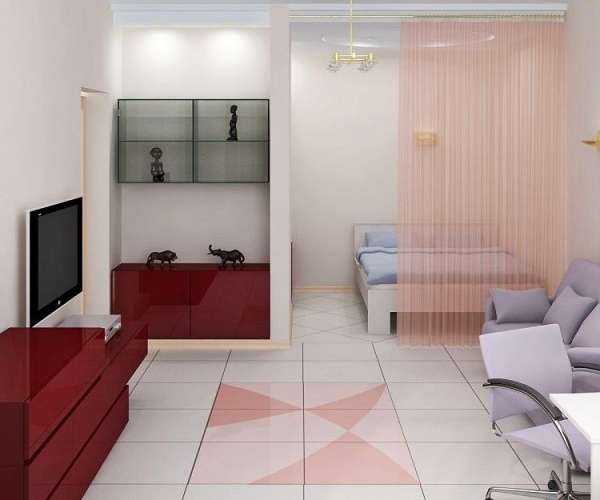 2. Зонирование интерьера однокомнатной квартиры без перегородок