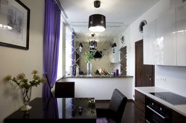 Превосходным способом зрительного увеличения пространства являются зеркальные поверхности. Особенно, если зеркальной будет вся стена. Но специалисты не рекомендуют установку зеркал в местах, где они будут отражать рабочую зону. Лучшее место установки зеркальных поверхностей, где их отражение – это передняя часть гостиной.