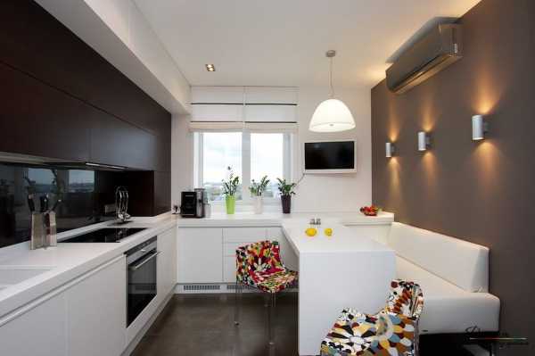 Яркие или темные цвета вводите посредством акцентов. Но ни в коем случае не делайте их фоном, ведь тогда Ваша комната станет и вовсе крохотной. Если же темный фон для Вас – это идея фикс, то можно, конечно, применить ее на практике. Правда, вам будет необходимо обязательно приобрести белые предметы мебели. Такое сочетание – это не просто классика, а это и неплохой ход, для того чтобы расширить пространство.