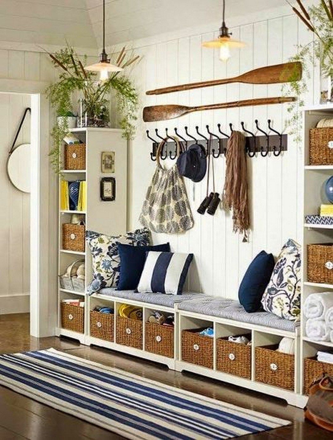 Вместительный стеллаж во всю стену отлично подойдет для компактного хранения вещей