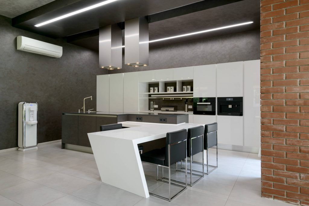 Кухня в стиле хай-тек с каждым годом становится все более функциональной. В первую очередь это касается не только стандартной встроенной техники (как правило, здесь можно найти холодильник, духовку, микроволновку, посудомоечную и иногда стиральную машину), но и дополнительных агрегатов.