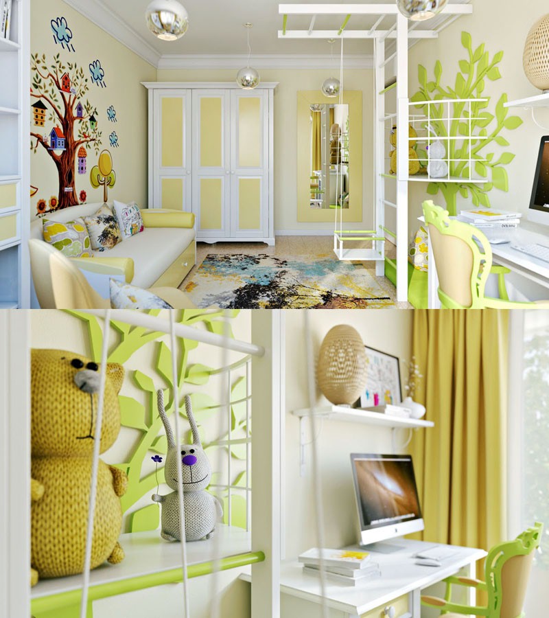 Если Вы предпочитаете сделать интерьер более универсальным, выбирайте достаточно строгую мебель, которая долго прослужит. Ну а что касается детского, все это можно создать при помощи наклеек, ярких занавесочек, подушечек, детских рисунков, веселых картинок, ковров, в целом, всего, что легко можно убрать/заменить.
