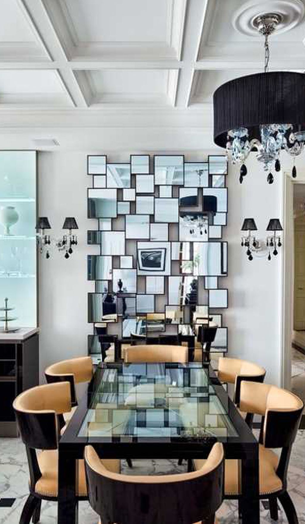 Два больших зеркала повесить напротив друг друга две одинаковые лампы, светящиеся мягким светом способствуют тому, что пространство будет казаться более просторным и удобным.