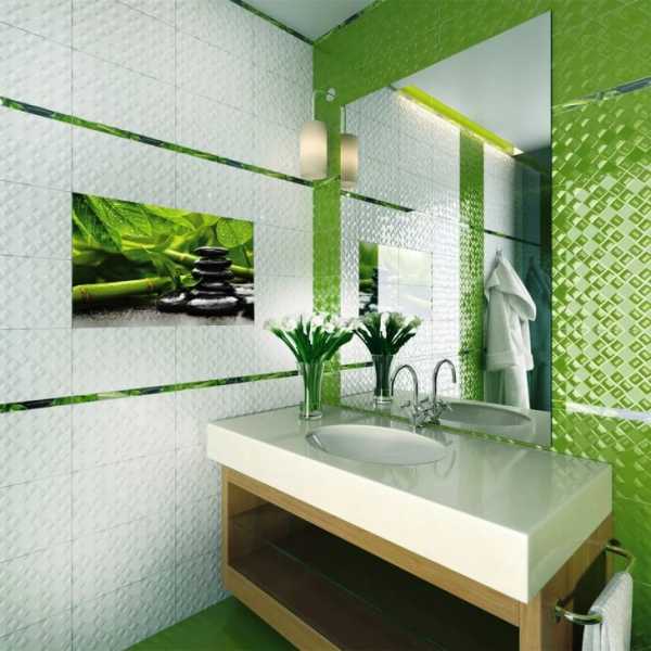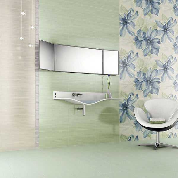- Зеленая, голубая, бирюзовая плитка придаст комнате свежести и подойдет тем, кто хочет получить ванную, заряжающую бодростью. Лучше всего использовать два-три оттенка одного цвета, как для пола, так и для стен