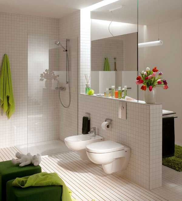 Стены туалета и ванной обычно облицовываются плиткой одного размера.