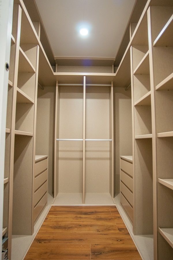 Расширить гардеробную можно в любой момент, добавив несколько модулей или специальных устройств для хранения брюк или галстуков, пантограф для максимально эффективного использования потолочного пространства. Все мелкие аксессуары могут храниться в ящиках для мелочей на полу или возле двери.
