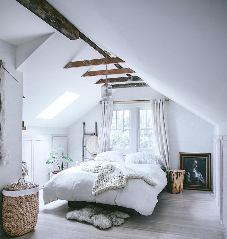 Спальня на мансарде: идеи для комнаты со скошенными стенами