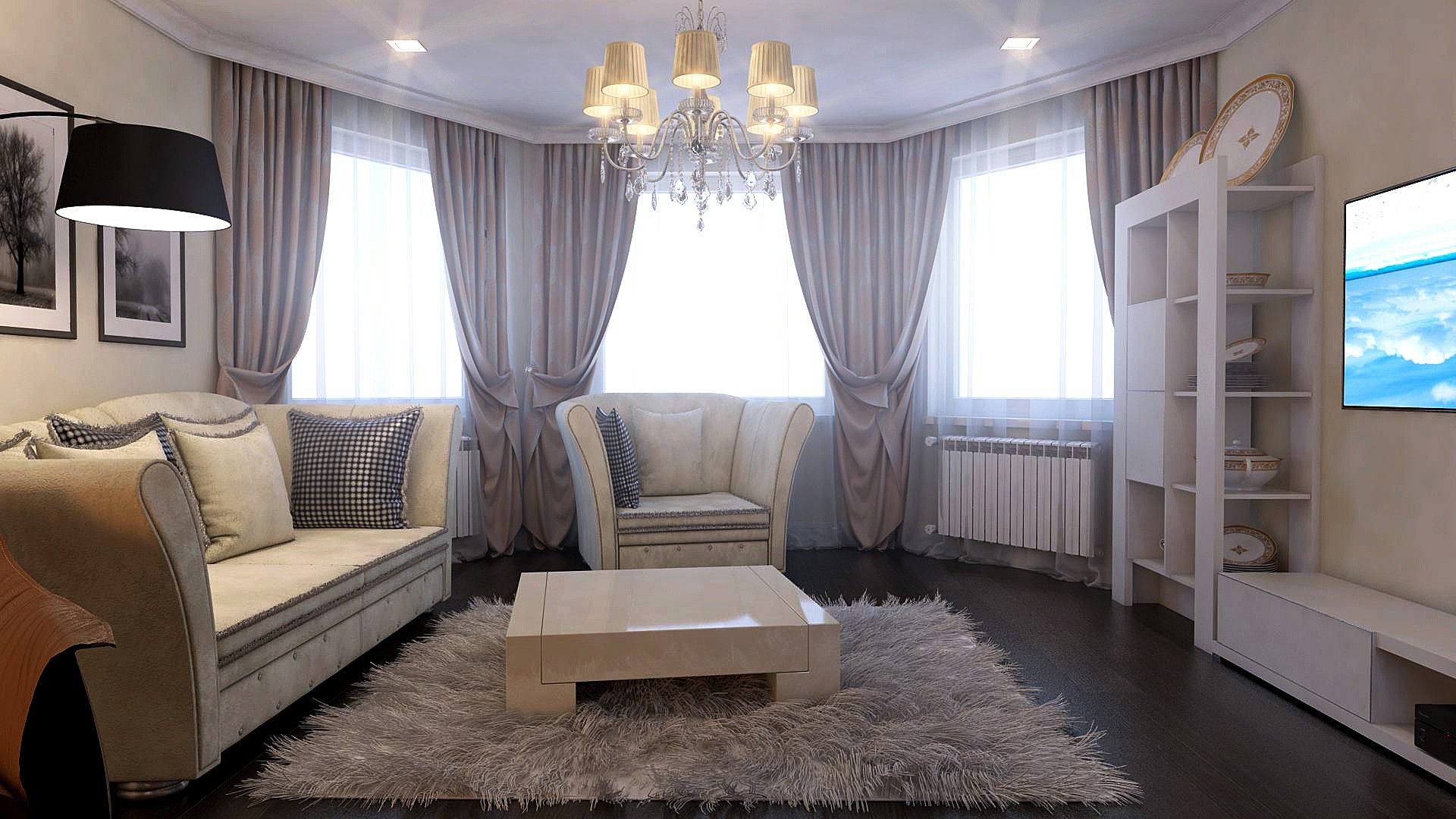 Интерьер гостиной с эркерным окном
