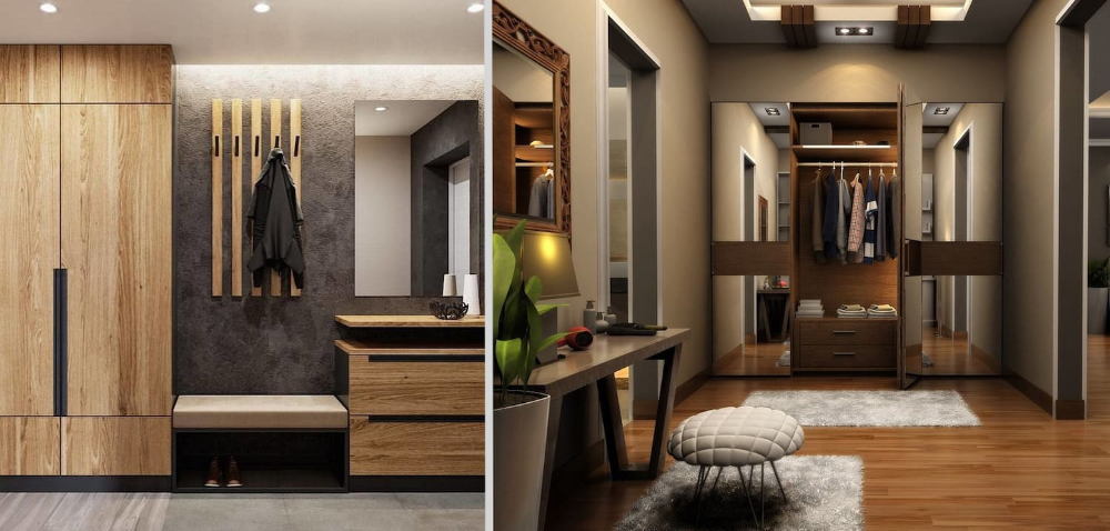Часто возникает необходимость гармонично разместить гардеробную в небольшой квартире, поэтому прекрасным вариантом станет совмещение гардеробной с прихожей.