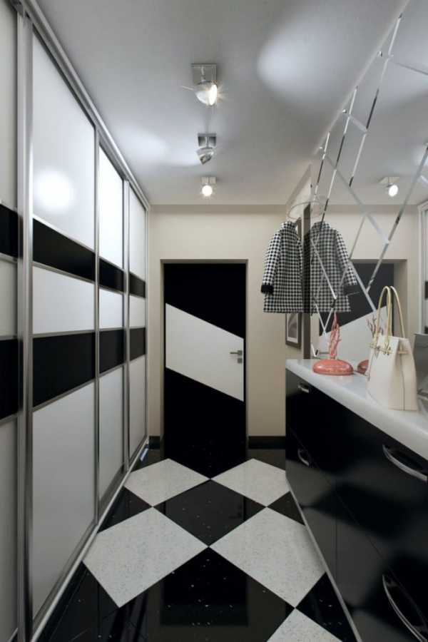 - Современный стиль дизайна прихожей можно выдержать только со встроенной мебелью. Подробно про правила компоновки с кучей схем и фото: Прихожая для узкого коридора.