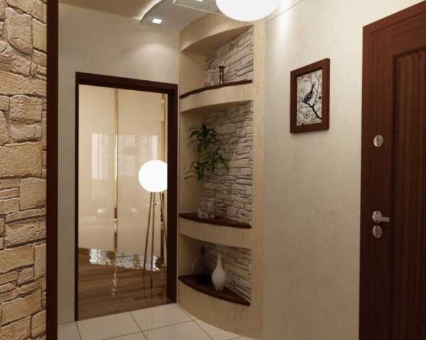 Декоративный камень – еще один материал, любимый дизайнерами. Обычно он используется не для всей поверхности стен, а для оформления углов, дверных проемов, зеркал, хотя встречаются и другие интересные решения. Несмотря на оригинальный внешний вид материала, его также не рекомендуется использовать в узких коридорах. Оценить красоту необычной отделки можно лишь в достаточно просторном помещении.