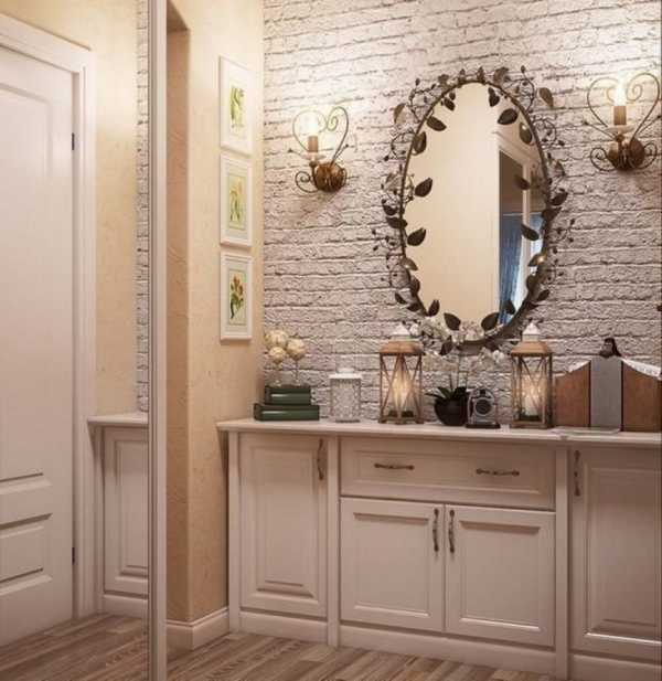- Прованс. Французская романтика прованса предполагает нежность и простоту. В такую прихожую отлично впишутся обои с цветочным принтом или в полоску, светлый ламинат или плитка, стилизованная под старину. Идеальным оформлением освещения станут светильники с текстильными плафонами. В качестве мебели здесь будут уместны и светлые деревянные шкафы, и кованые вешалки. Стены можно украсить часами, картинами и зеркалом в деревянных рамах.