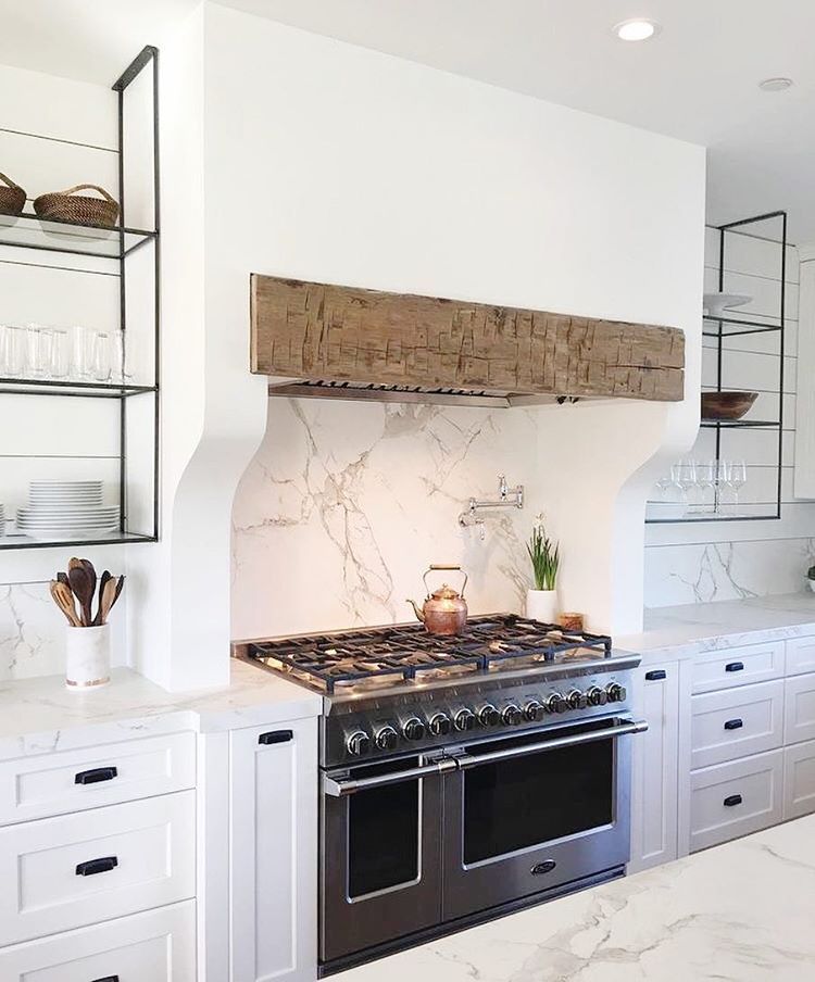 Дизайнер Саммер Дженсен добавляет элегантную вытяжку, которая органично вписывается в дизайн кухни.