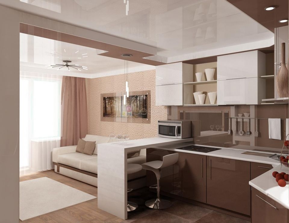 Кухня гостиная 18 кв м: дизайн прямоугольной совмещенной студии