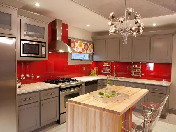 Говорят, что красный не только возбуждает аппетит, но и теряет счет времени, что делает его одним из лучших цветов для кухни. Он отлично подойдет для обеденной кухни для большой семьи. Когда вы используете ярко-красный цвет, делайте это в умеренных количествах, так как он может быть слишком подавляющим.