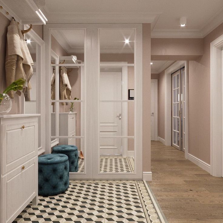 - Прием 8. Шкафы-купе. Чтобы сэкономить немного полезного пространства, установите в прихожей не шкафчик с распашными дверцами, а шкаф-купе.