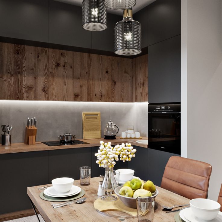 Сочетайте нейтральные идеи кухни с новейшими видами отделки под дерево и обратите внимание на контрастные цвета кухонного шкафа и текстурированные материалы.