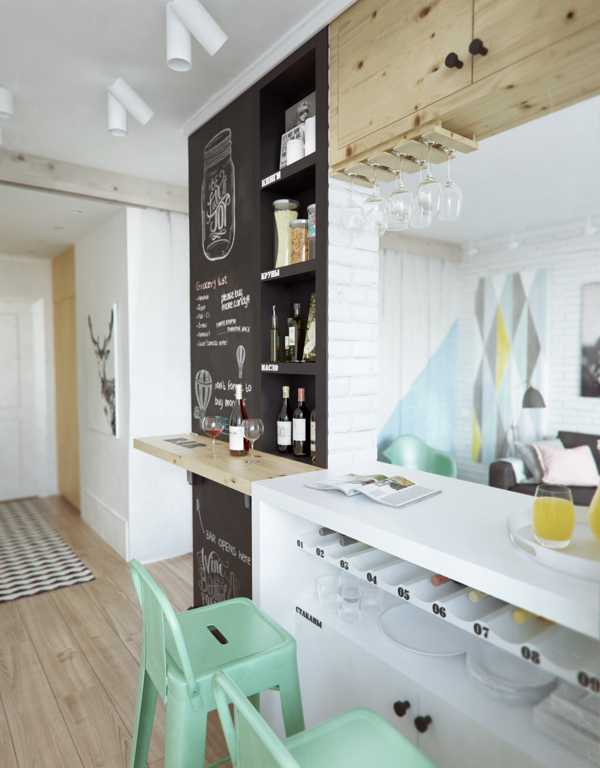 Идея совместить часть комнаты с кухней появилась в современных постиндустриальных странах, позже направление такого дизайна пришло и к нам