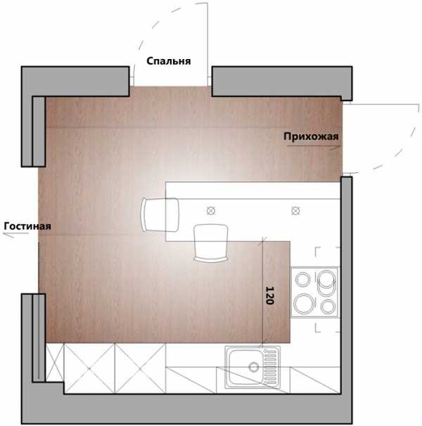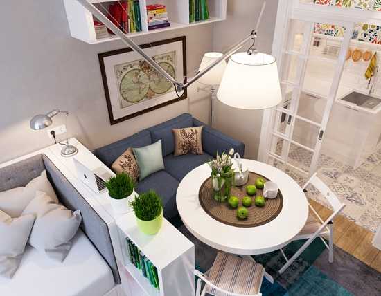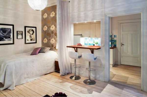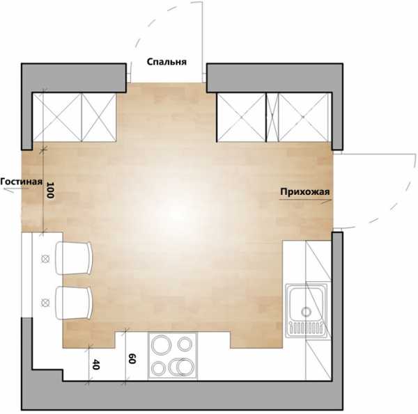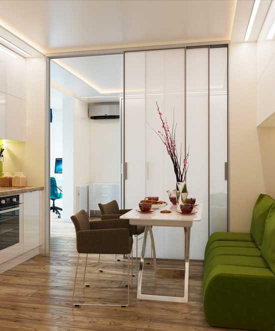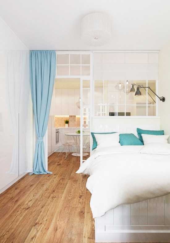 - отделить в квартире-студио небольшую изолированную комнату под кухню;