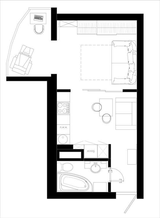 Рассмотрим плюсы и минусы таких квартир на примере ЖК «Дружба» (ОДО «Айрон»), для которых наши специалисты разработали варианты функционального использования пространства, — предлагает Татьяна Андрущук, арт-руководитель студии «Дизайн Сервис».