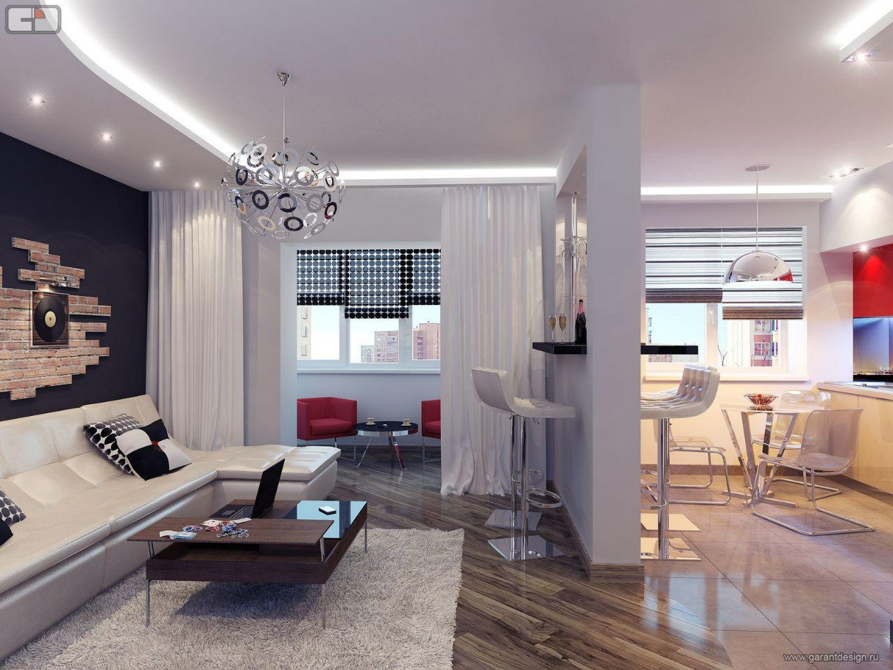 Если есть балкон или лоджия, рекомендуется обязательно убрать стены (если они не несущие), а в полученной нише организовать спальное место или рабочий кабинет. Для отделения спальни можно использовать стеклянные перегородки с портьерами, мобильные ширмы либо просто шторы.