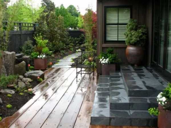 Для большой территории подойдёт оформление в японском стиле где можно создать ручей или «уголок дикой природы», в котором будут находиться лесные деревья.