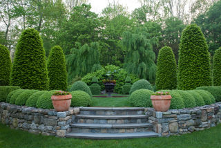 То есть можно украсить участок как симметричными аккуратными композициями, так и необычными асимметричными элементами, которые во всех комбинациях выглядят гармонично и логично.