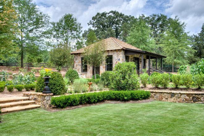 Прованс. Это — европейская разновидность кантри. Ее отличает склонность к романтике: сад выглядит подчеркнуто пасторально, его делают уединенным, а пышным цветам отводится столько же места, сколько и плодовым культурам. Въездную зону делают компактной, а за домом разбивают пейзажный сад с извилистыми дорожками, с небольшим аккуратным огородом.