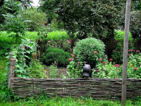 Ограждение. По периметру сада часто формируют живые изгороди. Подойдут для этого такие «обитатели» деревни, как жасмин, кустарниковые ивы, арония, кизильник, ирга, золотистая смородина, сирень.