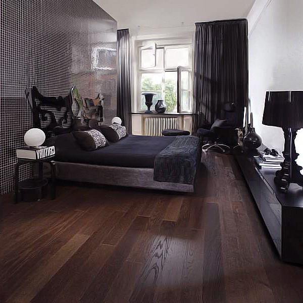 В случае если помещение светлое само по себе и имеет хорошее освещение, то прекрасно подойдёт покрытие тёмного цвета. Оно позволит соединить воедино всё пространство и не будет быстро пачкаться.