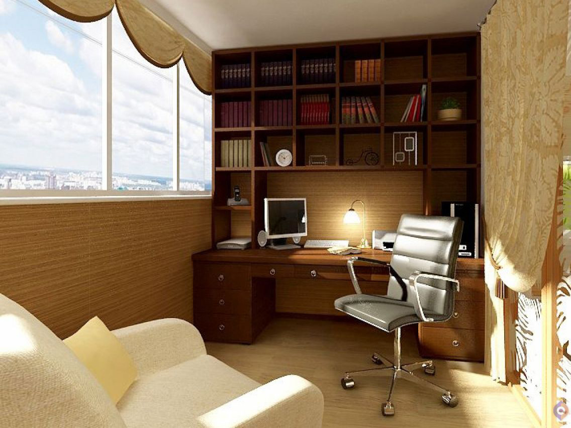 Дизайн балкона под рабочий кабинет.