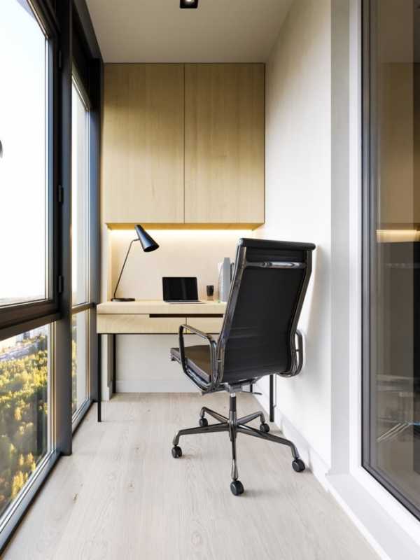 ΠΠ΅Π»ΠΈΠΊΠΎΠ»Π΅ΠΏΠ½ΠΎ Π²ΡΠ³Π»ΡΠ΄ΠΈΡ ΠΊΠ°Π±ΠΈΠ½Π΅Ρ Π½Π° Π±Π°Π»ΠΊΠΎΠ½Π΅ Ρ ΠΏΠ°Π½ΠΎΡΠ°ΠΌΠ½ΡΠΌΠΈ ΠΎΠΊΠ½Π°ΠΌΠΈ: ΠΎΡΠΊΡΡΡΠΎΠ΅ ΠΏΡΠΎΡΡΡΠ°Π½ΡΡΠ²ΠΎ Π΄Π°ΡΠΈΡ ΠΎΡΡΡΠ΅Π½ΠΈΠ΅ ΠΏΡΠΎΡΡΠΎΡΠ° Π² ΡΠ·ΠΊΠΎΠΌ ΠΏΠΎΠΌΠ΅ΡΠ΅Π½ΠΈΠΈ.