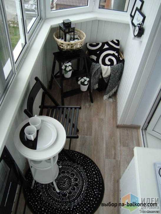ΠΠΈΠ·Π°ΠΉΠ½ Π±Π°Π»ΠΊΠΎΠ½Π° ΠΏΠ»ΠΎΡΠ°Π΄ΡΡ 3 ΠΊΠ². ΠΌ Π² ΡΠ΅ΡΠ½ΠΎ-Π±Π΅Π»ΠΎΠΉ Π³Π°ΠΌΠΌΠ΅. Π‘ΡΡΠ»ΡΡ, ΠΊΠΎΡΠ΅ΠΉΠ½ΡΠΉ ΡΡΠΎΠ»ΠΈΠΊ, ΠΊΠΎΠ²Π΅Ρ, ΠΏΠΎΠ΄ΡΡΠΊΠΈ, ΠΏΠΎΡΡΠ΄Π° ΠΈ ΠΏΡΠ΅Π΄ΠΌΠ΅ΡΡ Π΄Π΅ΠΊΠΎΡΠ° β Π²ΡΠ΅ Π²ΡΠ΄Π΅ΡΠΆΠ°Π½ΠΎ Π² ΠΎΠ΄Π½ΠΎΠΌ ΡΡΠΈΠ»Π΅.