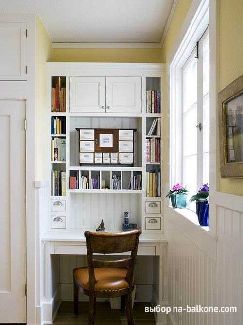 ΠΠ°ΠΊ ΠΈ Π²ΡΡΠΊΠΎΠ΅ Π΄ΡΡΠ³ΠΎΠ΅ ΠΏΠΎΠΌΠ΅ΡΠ΅Π½ΠΈΠ΅, ΠΊΠ°Π±ΠΈΠ½Π΅Ρ Π½Π° Π±Π°Π»ΠΊΠΎΠ½Π΅ Π±ΡΠ΄Π΅Ρ ΠΈΠΌΠ΅ΡΡ Π½Π΅ΡΠΊΠΎΠ»ΡΠΊΠΎ ΡΡΠ½ΠΊΡΠΈΠΎΠ½Π°Π»ΡΠ½ΡΡ Π·ΠΎΠ½: Π΄Π»Ρ ΠΎΡΠ΄ΡΡ Π°, ΠΊΠ½ΠΈΠ³, ΡΠ°ΡΡΠ΅Π½ΠΈΠΉ ΠΈ, ΠΊΠΎΠ½Π΅ΡΠ½ΠΎ ΠΆΠ΅, ΡΠ°Π±ΠΎΡΡ. ΠΠ»Ρ ΡΡΠΎΠ³ΠΎ Π»ΡΡΡΠ΅ Π²ΡΠ΅Π³ΠΎ ΠΈΡΠΏΠΎΠ»ΡΠ·ΠΎΠ²Π°ΡΡ ΡΡΠ³ΠΎΠ½ΠΎΠΌΠΈΡΠ½ΠΎΠ΅ ΠΊΡΠ΅ΡΠ»ΠΎ ΠΈ ΡΡΡΠ», Π° ΡΠ°ΠΊΠΆΠ΅ Π²ΡΠ΅Π²ΠΎΠ·ΠΌΠΎΠΆΠ½ΡΠ΅ Π½Π°Π²Π΅ΡΠ½ΡΠ΅ ΡΠΊΠ°ΡΡΠΈΠΊΠΈ ΠΈ ΠΏΠΎΠ»ΠΊΠΈ. Π§ΡΠΎΠ±Ρ Π²ΡΡ ΡΡΠ° Π³Π°ΡΠ½ΠΈΡΡΡΠ° ΠΈΠ΄Π΅Π°Π»ΡΠ½ΠΎ Π²ΠΏΠΈΡΠ°Π»Π°ΡΡ Π² ΠΏΠΎΠΌΠ΅ΡΠ΅Π½ΠΈΠ΅, ΡΠ΅ΠΊΠΎΠΌΠ΅Π½Π΄ΡΠ΅ΡΡΡ ΠΏΡΠΈΠΎΠ±ΡΠ΅ΡΠ°ΡΡ ΠΌΠ΅Π±Π΅Π»Ρ Π½Π° Π·Π°ΠΊΠ°Π·.