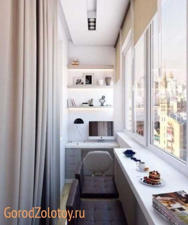 Π£Π·ΠΊΠΈΠΉ Π±Π°Π»ΠΊΠΎΠ½ ΡΠΎΠ²Π΅ΡΡΠ΅Π½Π½ΠΎ Π½Π΅ ΡΠ²Π»ΡΠ΅ΡΡΡ ΠΏΡΠ΅Π³ΡΠ°Π΄ΠΎΠΉ Π΄Π»Ρ ΠΎΠ±ΡΡΡΡΠΎΠΉΡΡΠ²Π° ΡΡΠΈΠ»ΡΠ½ΠΎΠ³ΠΎ ΠΊΠ°Π±ΠΈΠ½Π΅ΡΠ°. ΠΠ°ΠΆΠ΅ ΡΠ°ΠΌΠΎΠ΅ ΡΠ·ΠΊΠΎΠ΅ ΠΏΠΎΠΌΠ΅ΡΠ΅Π½ΠΈΠ΅ ΡΠΌΠΎΠΆΠ΅Ρ Π²ΠΌΠ΅ΡΡΠΈΡΡ ΠΌΠΈΠ½ΠΈΠΌΠ°Π»ΡΠ½ΡΠΉ Π½Π°Π±ΠΎΡ ΠΌΠ΅Π±Π΅Π»ΠΈ β ΡΡΠΎΠ», ΡΡΡΠ», ΠΏΠΎΠ»ΠΎΡΠΊΠΈ. ΠΡΠ»ΠΈΡΠ½ΡΠΌ Π²ΡΠ±ΠΎΡΠΎΠΌ ΡΡΠ°Π½Π΅Ρ ΡΠ°Π·ΠΌΠ΅ΡΠ΅Π½ΠΈΠ΅ ΡΠ²Π΅ΡΠΎΡΠ½ΠΎΠ³ΠΎ Π²Π°Π·ΠΎΠ½Π°, Π½Π΅Π±ΠΎΠ»ΡΡΠΎΠ³ΠΎ ΡΡΡΠ»ΡΡΠΈΠΊΠ° ΠΈΠ»ΠΈ ΠΌΡΠ³ΠΊΠΎΠ³ΠΎ ΠΊΡΠ΅ΡΠ»Π° Π΄Π»Ρ ΠΎΡΠ΄ΡΡ Π°. Π Π±Π°Π»ΠΊΠΎΠ½Π°Ρ ΡΠ°ΠΊΠΎΠ³ΠΎ ΡΠΈΠΏΠ° ΠΌΠ½ΠΎΠ³ΠΎ ΠΏΡΠΎΡΡΡΠ°Π½ΡΡΠ²Π° ΠΊΡΠ°Π΄ΡΡ ΠΏΠΎΠ΄ΠΎΠΊΠΎΠ½Π½ΠΈΠΊΠΈ, ΠΏΠΎΡΡΠΎΠΌΡ Π»ΡΡΡΠ΅ Π²ΡΠ΅Π³ΠΎ ΠΈΡ ΠΏΡΠΎΡΡΠΎ ΡΠ±ΡΠ°ΡΡ. ΠΠΎΠΆΠ½ΠΎ ΡΠ°ΠΊΠΆΠ΅ ΡΠΎΠ΅Π΄ΠΈΠ½ΠΈΡΡ Π»ΠΎΠ΄ΠΆΠΈΡ Ρ ΠΊΠΎΠΌΠ½Π°ΡΠΎΠΉ, ΠΈΡΠΏΠΎΠ»ΡΠ·ΡΡ ΠΏΠ΅ΡΠ΅Π³ΠΎΡΠΎΠ΄ΠΊΡ β ΠΌΡΠ³ΠΊΡΡ ΠΌΠ΅Π±Π΅Π»ΡΠ½ΡΡ ΡΡΠ΅Π½ΠΊΡ ΠΈΠ»ΠΈ Π°ΠΊΠ²Π°ΡΠΈΡΠΌ.