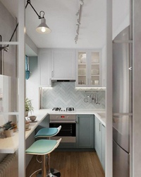 Наилучшими вариантами для малогабаритных помещений считаются прямая, угловая или модель с барной стойкой.