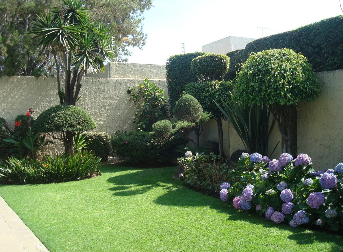 Оптимальный вариант – штакетник или рабица. - Прежде, чем подобрать кустарники и деревья, помните, что через несколько лет они станут большими, а корневая система разрастется. Дизайн маленького сада предполагает низкорослые деревья и компактные кустарники.