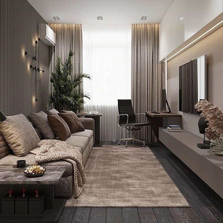 Что касается цвета мебели, мы знаем, что в моде темные оттенки, такие как черный, землисто-коричневый и темно-серый. Но какой бы ни была цветовая палитра интерьера вашей квартиры, постарайтесь создать ощущение контраста между цветами мебели и стен в вашей комнате — это то, что действительно сделает вашу планировку эффектной.